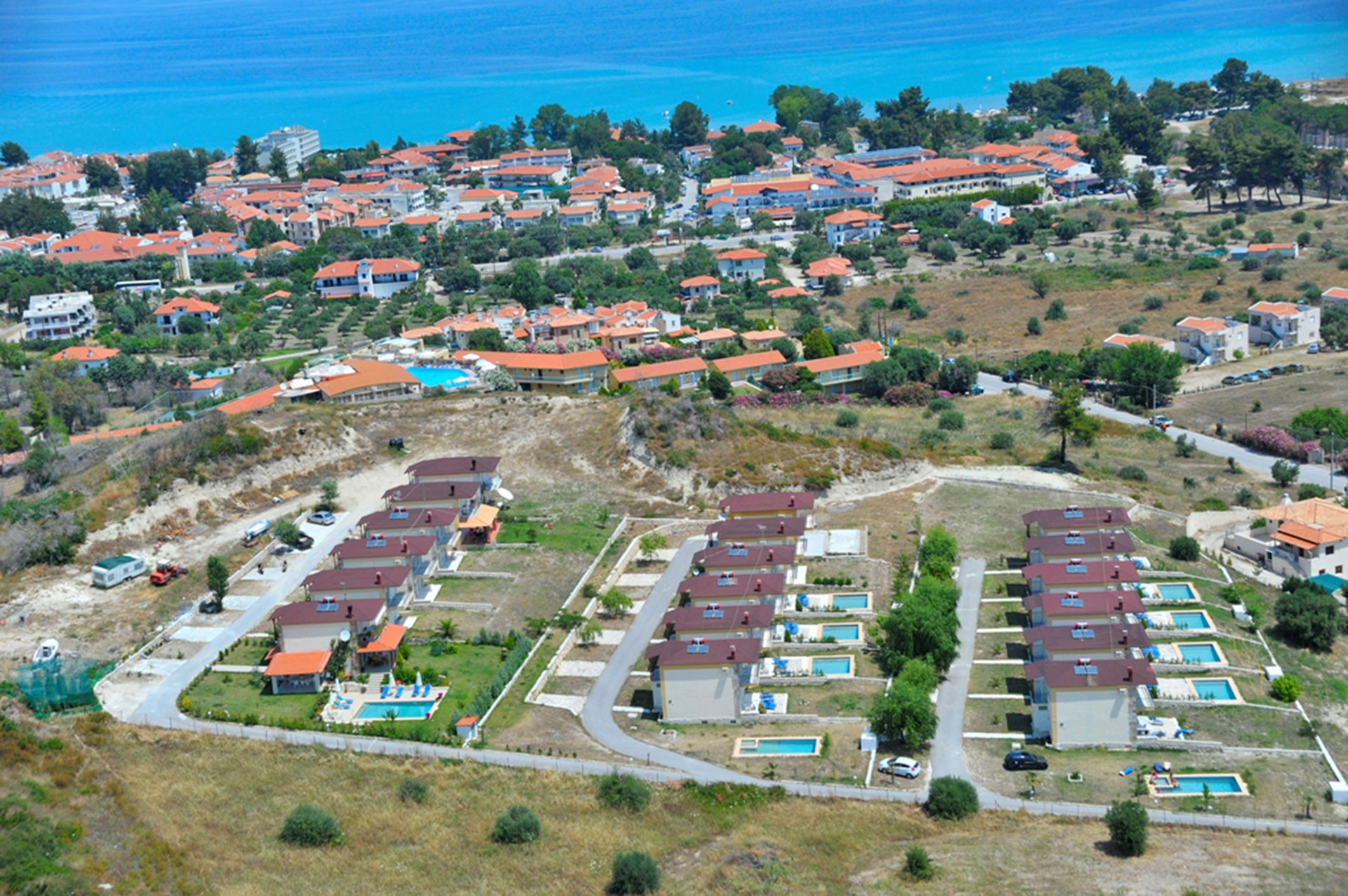 In the first leg of Halkidiki Kassandria in the village of Chanioti, situated houses of 150 sq.m, with private swimming pool each apartment! The house consists of a basement 50sqm, 50sq.m on the ground floor a kitchen a LIVING a small bathroom on the first floor 50sq.m with 3 bedrooms Mr. a large bathroom. Maisonettes have a solar installation, heating, private parking.Distance to sea 800m.